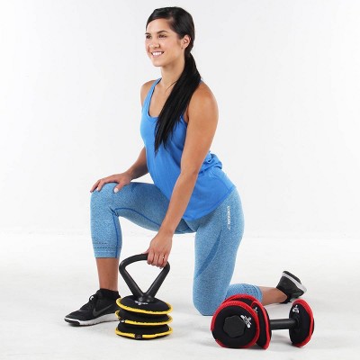 FitRx SmartBell Gym 4-in-1 Portable Interchangeable Dumbbell Barbell and Kettlebell Set with Adjustable Weights 60 Lbs. Use 300 pounds of gym equipment. Weights Weight Benches.